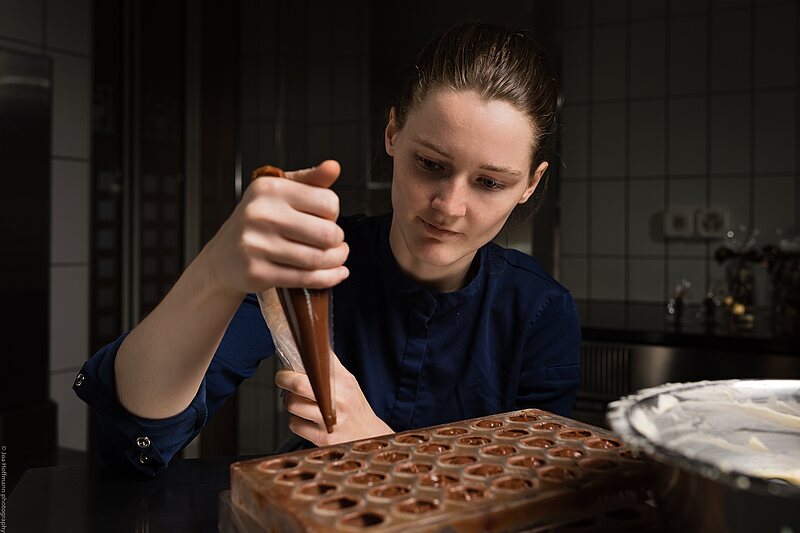 Das Salzige des Specks und die Süsse der Schokolade harmonieren hervorragend miteinander, denn beide Produkte – die Kakaobohnen und der Speck – werden geröstet und entwickeln deshalb ähnliche, komplexe Aromastoffe, die zusammenpassen. Hanna mag aussergewöhnliche Geschmacksrichtungen und entwickle gerne neue Trends.