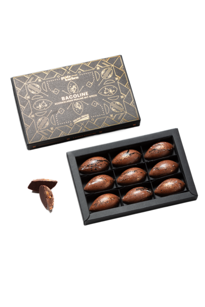 Pustekuchen by Hanna Karthaus lancierte in Zusammenarbeit mit der Spezialitäten-Metzg Wetter eine besonders gewagte Neuheit: die Bacoline – das erste Speck-Praliné der Schweiz. Eine raffinierte süss-salzige Versuchung mit unwiderstehlichem Crunch!