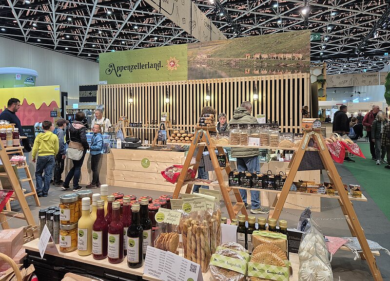 Der gemeinsame Auftritt und somit die Zusammenarbeit zwischen regionalen gewerblichen Produzenten, der Landwirtschaft und dem Tourismus war ein voller Erfolg. Anbieterinnen und Anbieter aus der Innerrhoder Landwirtschaft und dem Gewerbe verkauften bekannte und weniger bekannte Appenzeller Spezialitäten, von «Reissäckli», über Safran-Nudeln, Biberfladen, Pantli und Schwartenmagen bis zum Rapsöl und Eiercognac. Besonders gefragt waren die verschiedenen Alpkäse von acht Innerrhoder Alpen. Aber auch der Messe-Hit der Kosmetiklinie mit Ziegenmolke «Ledibelle» verkaufte sich ausgezeichnet. Die zahlreichen Spezialitäten und Hofprodukte fanden grossen Anklang bei den Besucherinnen und Besucher der OLMA. Viele nutzen die Gelegenheit die vielfältigen und regionalen Produkte direkt vor Ort zu erwerben. Der Stand war über elf Messetage gut besucht, wobei auffiel, dass die Kauffreude der Besuchenden unter der Woche grösser war als an den beiden Wochenenden.