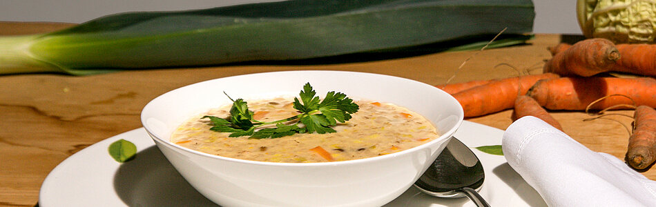 Die Appenzeller «Gsöödsoppe» mit viel Gemüse und Gerste ist eine ideale winterliche Mahlzeit. «Gsööd» bezeichnet vor allem Hülsenfrüchte und Gerste, «soppe» bedeutet Suppe – so setzt sich «Gsöödsoppe» zusammen.